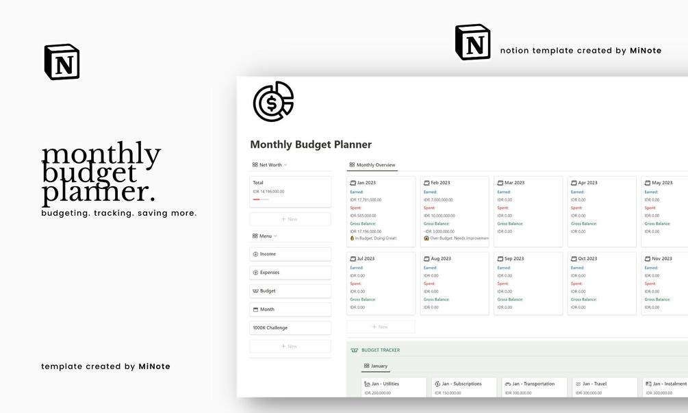 Monthly Budget Planner | Financial Digital Planner | Notion Template